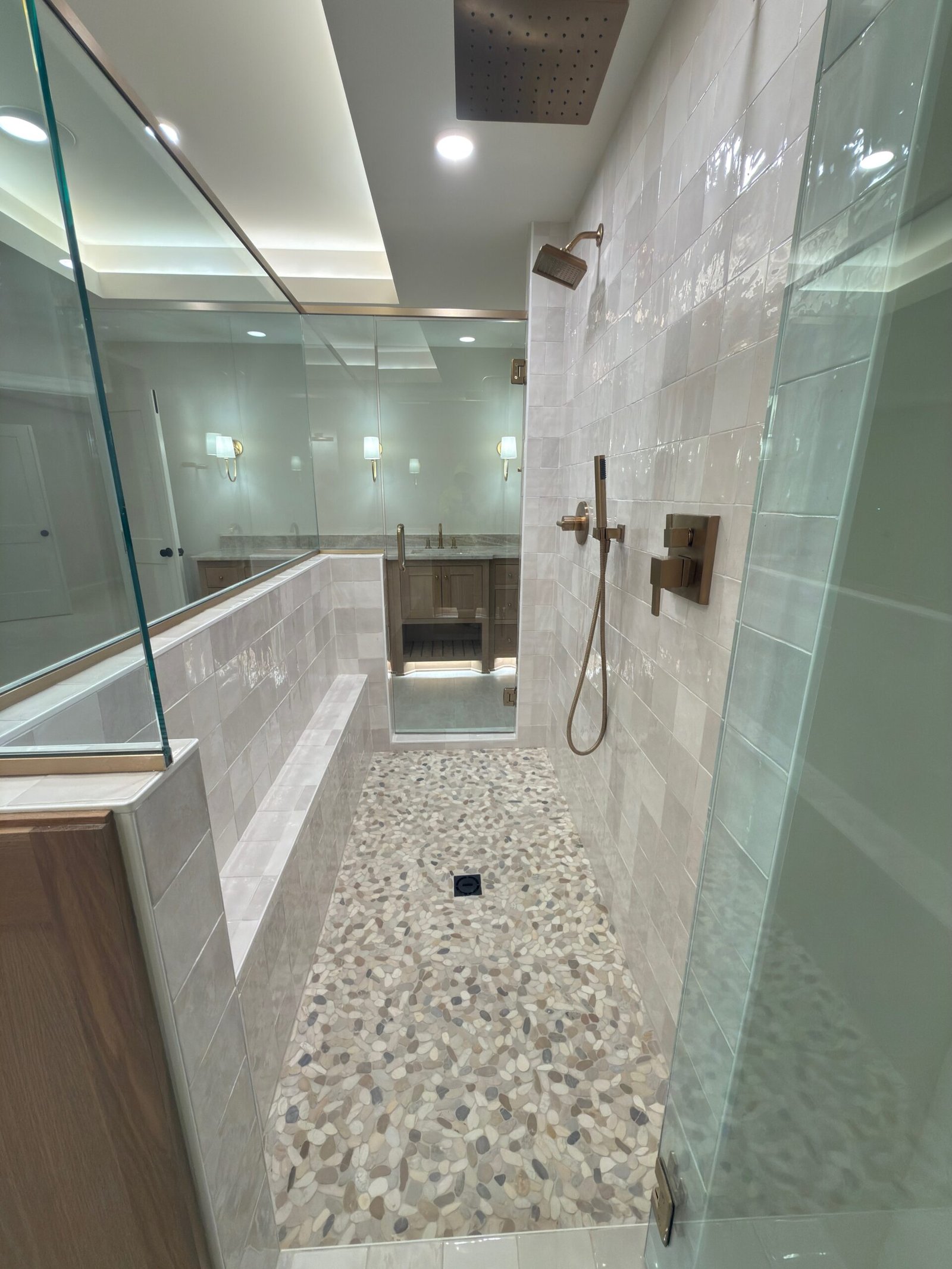 Remodeled this spring. Mike and his team installed all the tile. It was a pleasure to watch them work. What a beautiful job. Smooth sailing